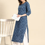 Women Blue Ethnic Printed Straight Kurta with Three Quarter Sleeves