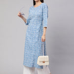 Women Blue Ethnic Printed Straight Kurta with Three Quarter Sleeves