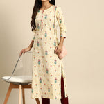 Women Yellow Printed straight Kurta With three quarter sleeves