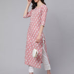 Pink Printed Straight Kurta With Three Quarter Sleeves