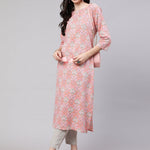 Pink Printed Straight Kurta With Three Quarter Sleeves