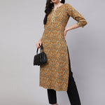 Mustard Printed Straight Kurta With Three Quarter Sleeves
