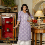 Purple Ethnic Printed Straight Kurta With Three Quarter Sleeves