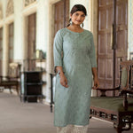 Green Ethnic Printed Straight Kurta With Three Quarter Sleeves