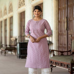 Purple Ethnic Printed Straight Kurta With Three Quarter Sleeves