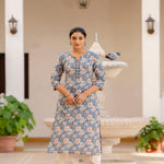 Blue Printed Straight Kurta With Three Quarter Sleeves