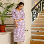 Purple Ethnic Printed Straight Kurta With Three Quarter Sleeves