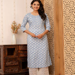 Blue Printed Straight Kurta With Three Quarter Sleeves