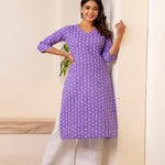 Purple Printed Straight Kurta With Three Quarter Sleeves