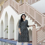 Black Ikat Printed Straight V-Neck Kurta