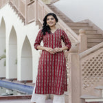 Maroon Ikat Printed Straight V-Neck Kurta