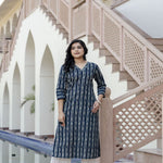 Blue Printed Straight Kurta With Three Quarter Sleeves