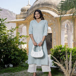 Green Ethnic Printed Straight Kurta With Three Quarter Sleeves