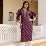 Burgundy Printed Straight Kurta With Three Quarter Sleeves