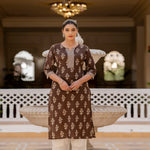 Brown Ethnic Printed Straight Kurta With Three Quarter Sleeves