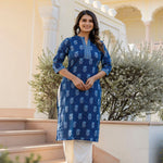 Navy Blue Printed Straight Kurta With Three Quarter Sleeves