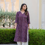 Purple Printed Straight Kurta With Three Quarter Sleeves
