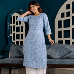 Blue Printed Straight Kurta With Three Quarter Sleeves