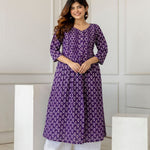 Purple Printed A-Line Kurta With Three Quarter Sleeves