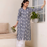 Grey Printed Straight Shirt Collar Kurta