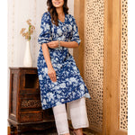 Navy Blue Printed Straight Kurta with Three Quarter Sleeves