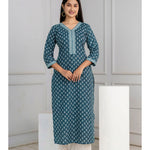 Green Printed Straight Kurta With Three Quarter Sleeves