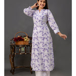 Purple Printed Straight Kurta With Three Quarter Sleeves
