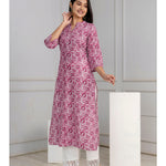 Mauve Printed Straight Kurta With Three Quarter Sleeves