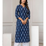 Navy Blue Printed Straight Kurta With Three Quarter Sleeves