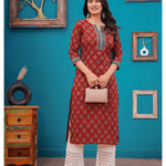 Maroon Printed Straight Kurta with Three Quarter Sleeves