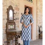 Blue Printed Straight Kurta with Three Quarter Sleeves