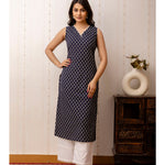 Navy Blue Printed Straight Shoulder Straps Kurta
