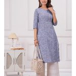 Blue Printed Straight Kurta with Three Quarter Sleeves