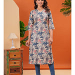Off White Printed Straight Kurta with Three Quarter Sleeves