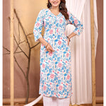 Off White Printed Straight Kurta with Three Quarter Sleeves