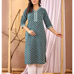 Green Printed Straight Kurta with Three Quarter Sleeves