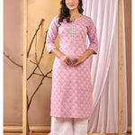 Mauve Printed Straight Kurta with Three Quarter Sleeves