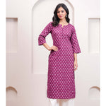 Purple Printed Straight Kurta with Three Quarter Sleeves