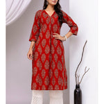 Maroon Printed Straight Kurta with Three Quarter Sleeves