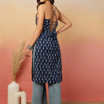 Navy Blue Printed Stylish Back Straight Sleeveless Kurta
