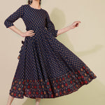 Cotton Calf Printed Flared 3/4 Sleeve Round Neck Kurta