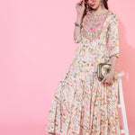 Rayon Calf Printed Flared 3/4 Sleeve Round Neck Kurta