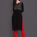 Embroidered Straight Calf Length 3/4 Sleeves Round Neck Cotton Slub Kurta