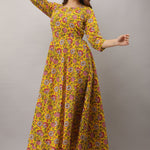 Printed Cotton 3/4 Sleeves Full Length Flared Dress
