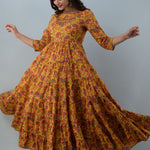 Printed Flared Ankle 3/4 Sleeves Round Neck Cotton Kurta