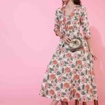 Cotton Flex Calf Length Printed Flared 3/4 sleeves V neck Kurta