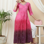 Rayon Calf Length Printed 3/4 Sleeve V-Neck Kurta