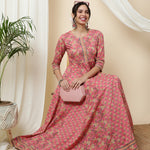 Cotton Ankle Length Printed 3/4 Sleeve Round Neck Kurta