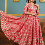 Cotton Ankle Length Printed Flared 3/4 Sleeves V-neck Kurta