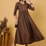 Rayon Calf Length Printed Flared 3/4 Sleeves V-Neck Kurta